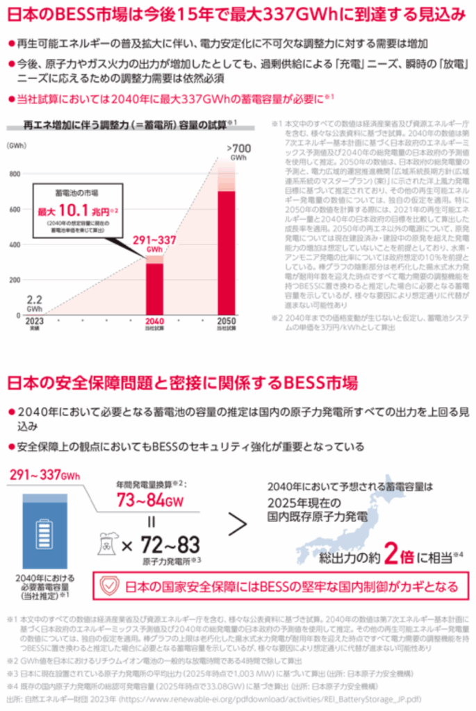 現時点ではBESS(大型蓄電池販売事業)が売上の8割程度を占めているようであり、今後も市場の拡大を予測しているようです。