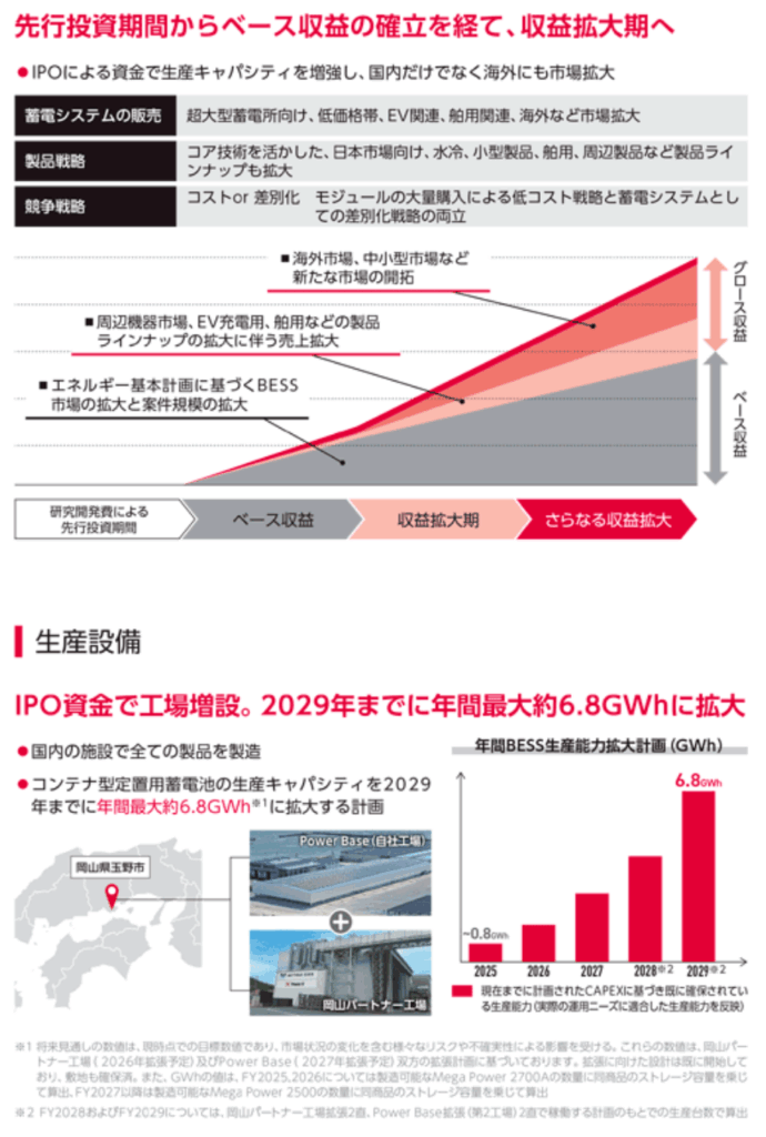 IPO後、海外への販売やEVCSなどの周辺機器販売の増加を目指し、工場を増設する見込みのようです。