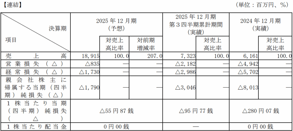 2024年12月期以降、大幅に受注が増加しており、売上高は急拡大していますが、まだ、赤字の状態であり、先行投資がかさんでいるようです。