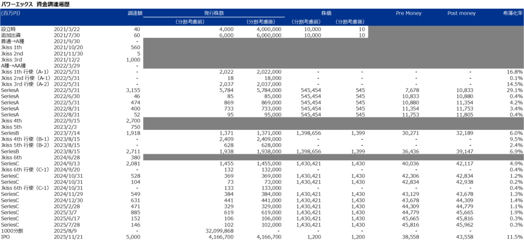 また、パワーエックス従業員持株会が出資しているという点も特徴的であろうかと思います。(非上場ではあまり見かけない)