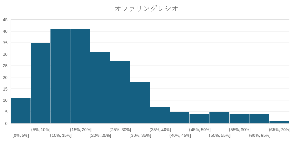 オファリングレシオ((売出+公募)÷発行済株式数)は5~20%が多くなっています。
